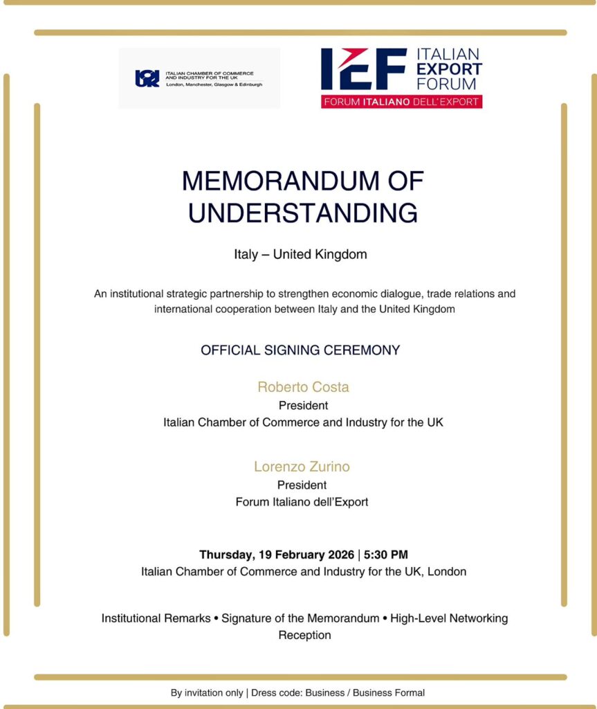 The Italian Chamber of Commerce and Industry for the United Kingdom is a company limited by guarantee. Registered in England no. 598572. Reg Office: 1 Princes Street, W1B 2AY, London. V.A.T. Registration No 510352988. The Chamber is recognized by the Italian Government under the law of 1st July 1970 no. 518.