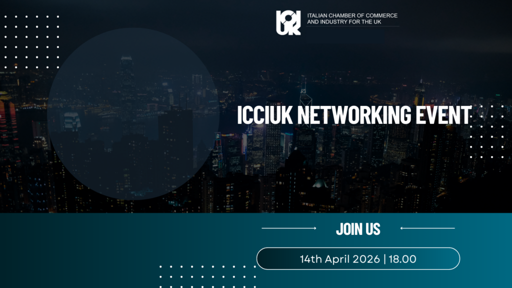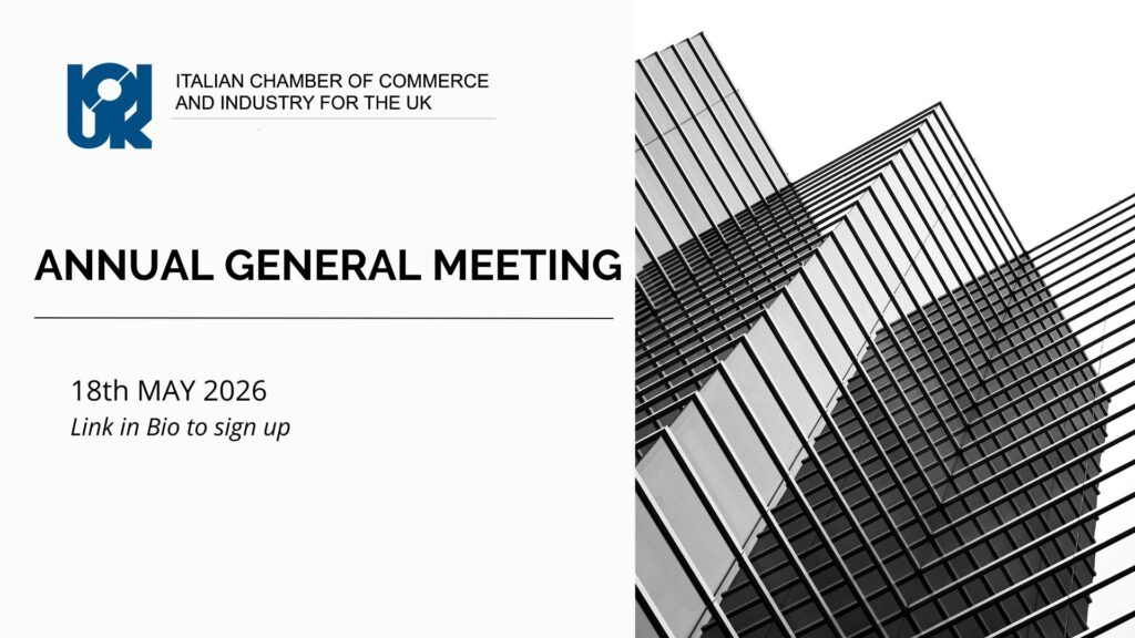 The Italian Chamber of Commerce and Industry for the United Kingdom is a company limited by guarantee. Registered in England no. 598572. Reg Office: 1 Princes Street, W1B 2AY, London. V.A.T. Registration No 510352988. The Chamber is recognized by the Italian Government under the law of 1st July 1970 no. 518.